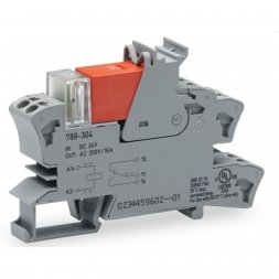 Wago Relay Module 24VDC 1c 16A max.250VAC AgNi, Red LED, W=15mm, DIN-rail